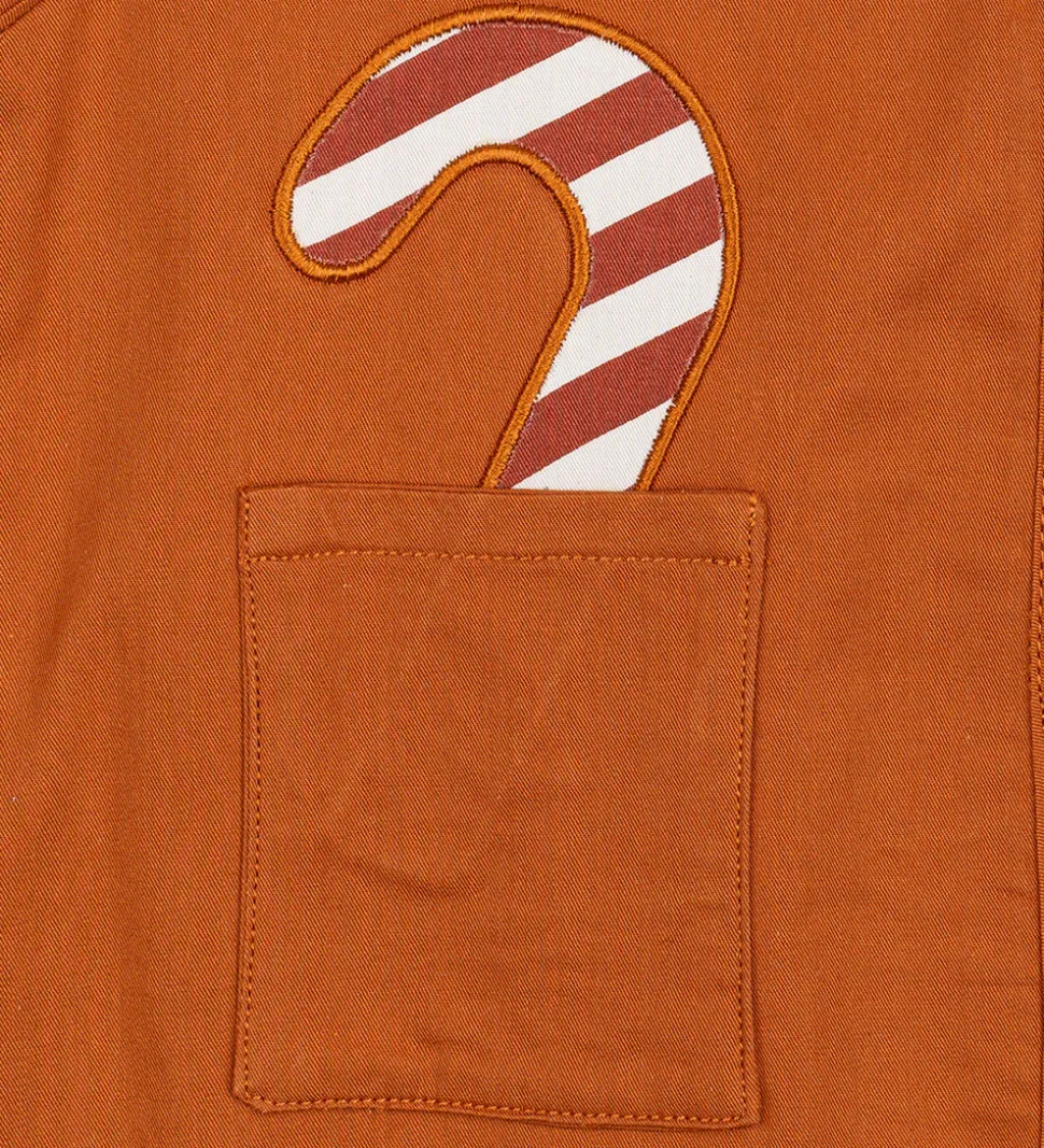 Sjovt Fabelab udklædning bestående af en vest i en brændt orange nuance, samt en nissehue og skæg.