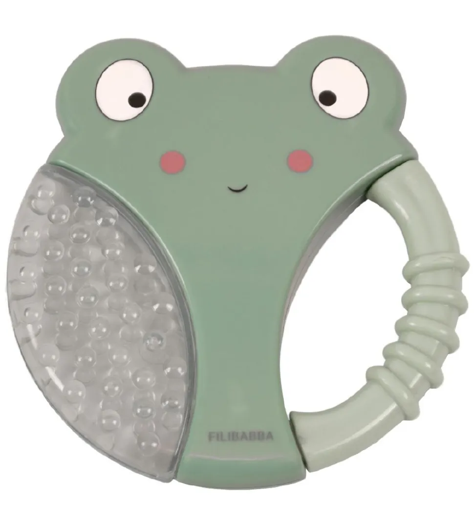 Filibabba bideringene er runde med en gribehank i den ene side, og i den anden side er de lavet af blødt past med små dutter, som stimulerer kløende gummer. I denne side er bideringen fyldt med rent vand, som bliver dejlig kølig efter en tur i køleskabet. Indeni bideringen er der små perler, som rasler.