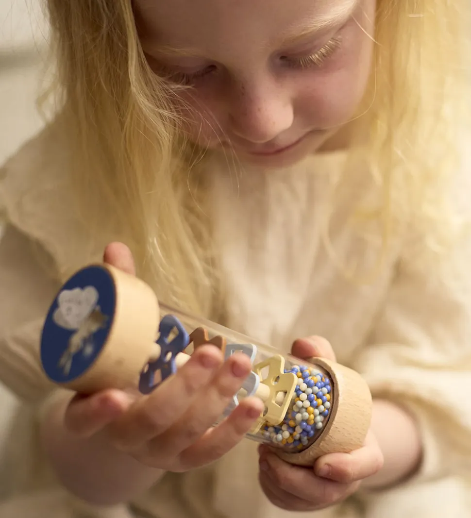Ranglerne består af en maracas, en rangle med en klokke og en aflang rangle med små kugler indeni. Ranglerne kommer i en fin kuffert, som åbnes med et spænde fortil og kan bæres i et håndtag.