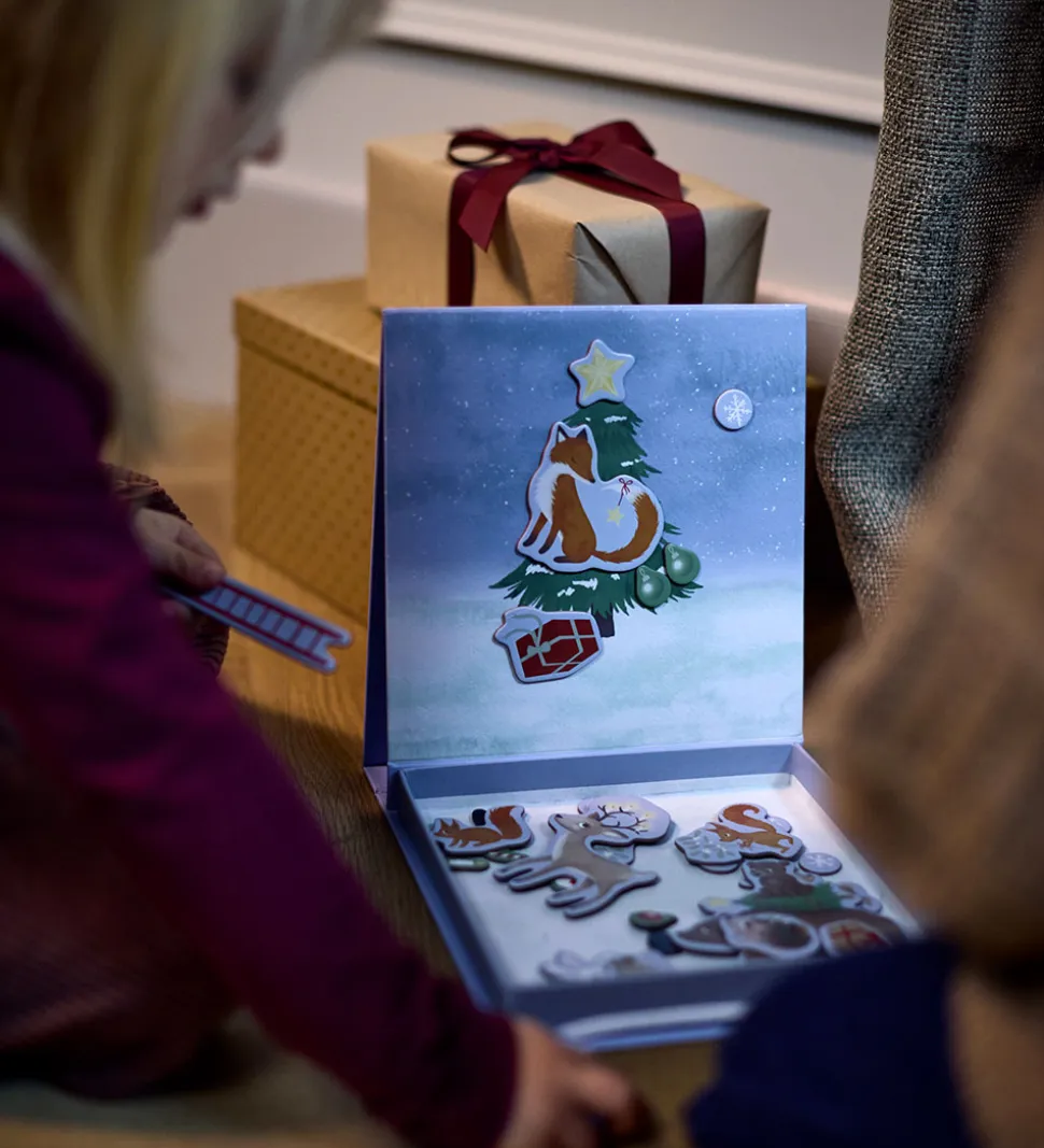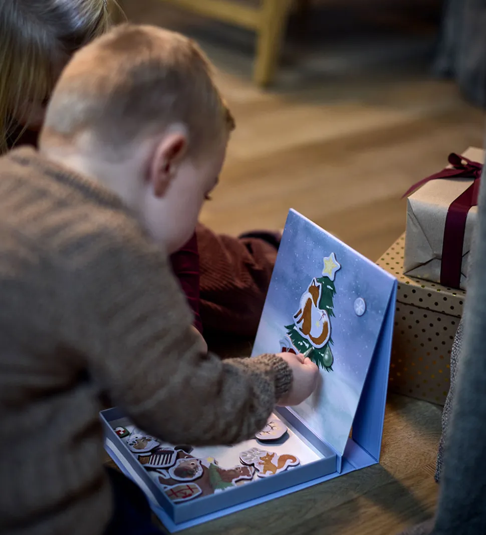 Flot Filibabba magnetlegetøj bestående af en lyseblå æske med juletema. Æsken indeholder 38 små magneter med julemotiver, som kan sættes på indersiden af æsken, og lave hyggelige billeder. Perfekt til fantasifuld leg og kreativ udfoldelse i juletiden.