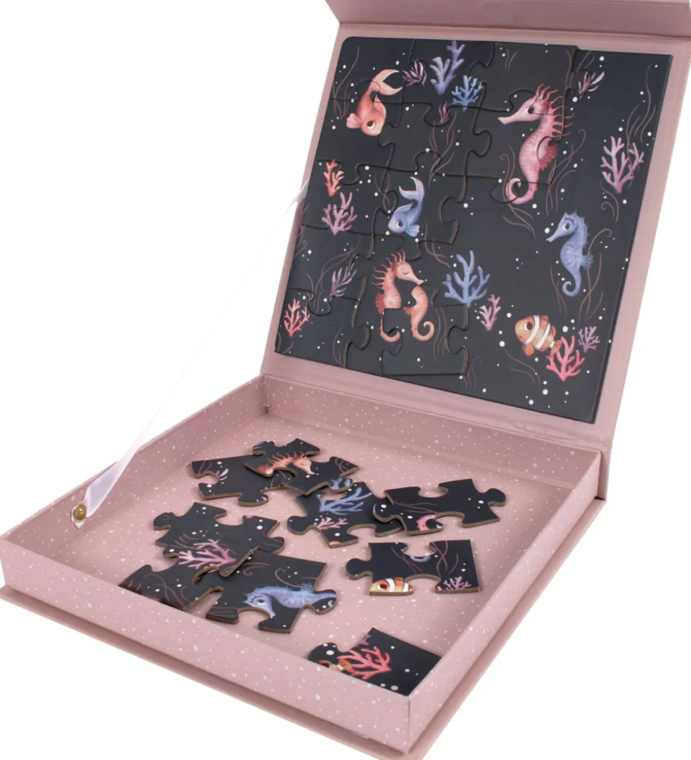 Sjovt Filibabba magnetisk puslespil med motiv af søde søheste.