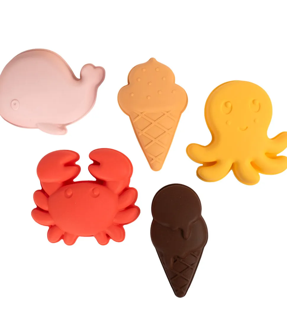 Fine Filibabba sandforme i rosa, beige, gul, rød og brun.