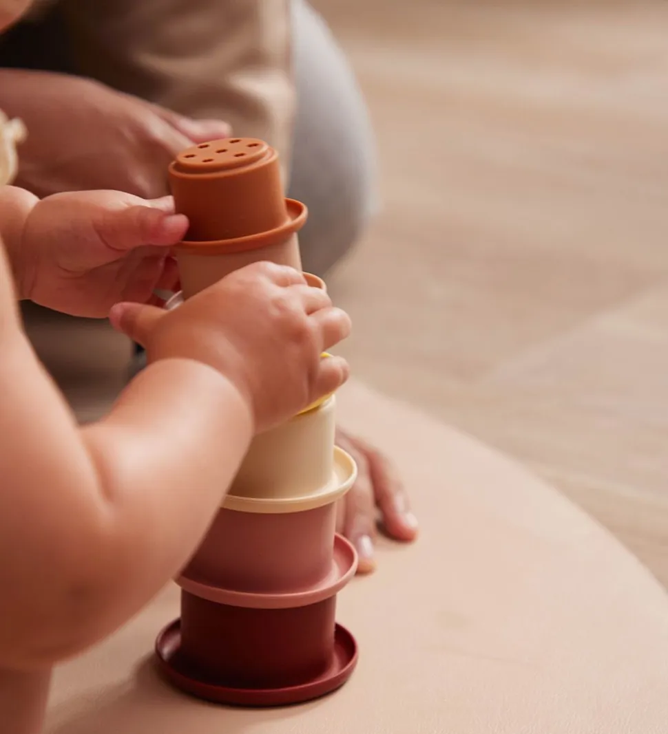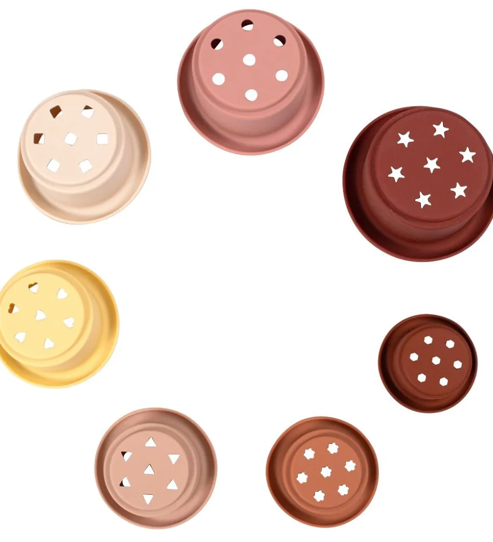 Filibabba stablekopperne består af syv kopper, alle med huller i bunden i forskellige former, så de også kan bruges f.eks. på stranden eller lignende. Kopperne kan bruges som inspiration til læring, leg og motorisk udvikling. Kopperne kan komme i øverste kurv i opvaskemaskinen, da de er i en god silikone kvalitet.