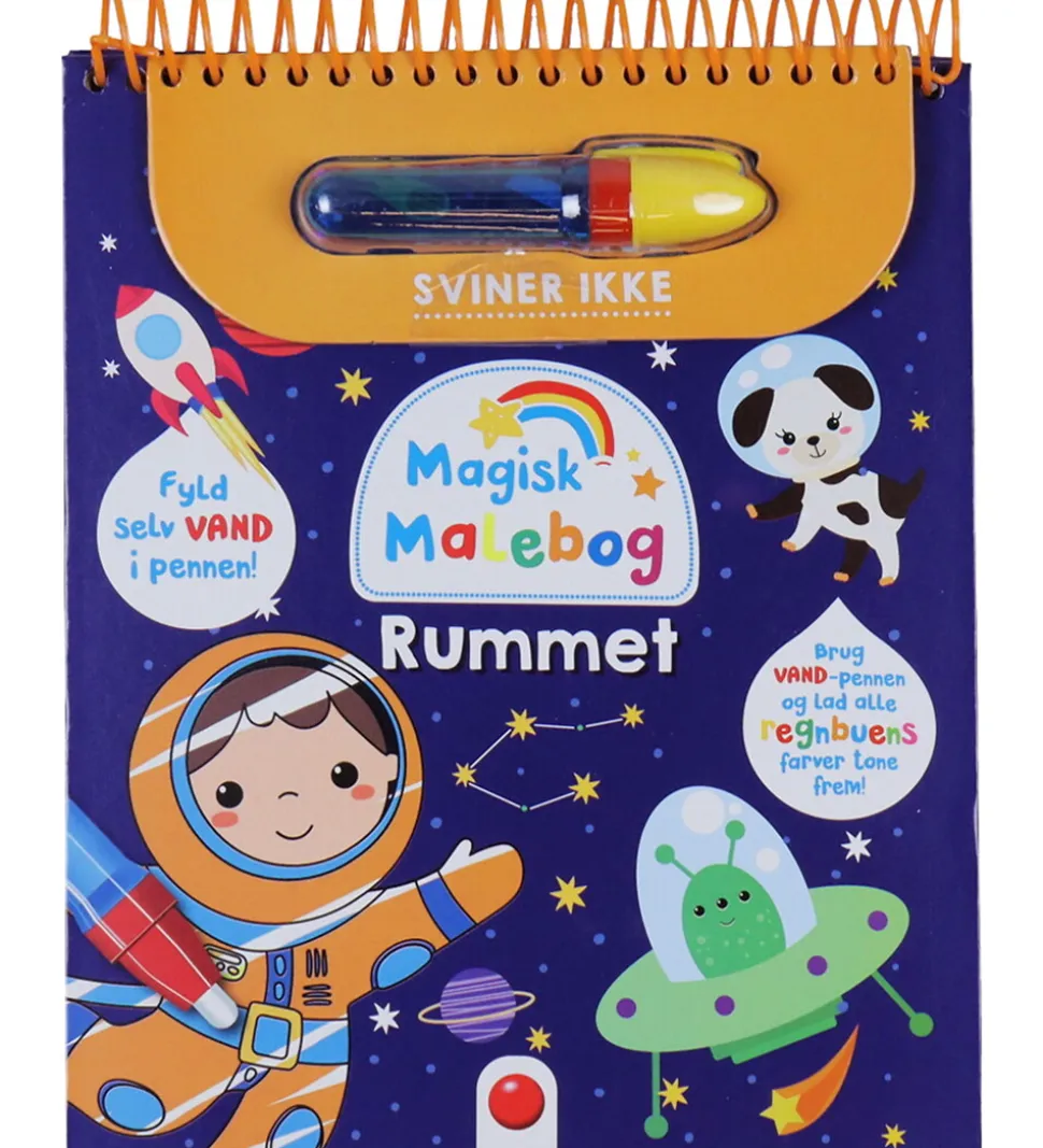 Forlaget Bolden malebogen inkluderer en vandpen, der får farverne til at komme frem. Når siderne tørrer forsvinder farven, og man kan derfor starte forfra og male billederne igen og igen.
