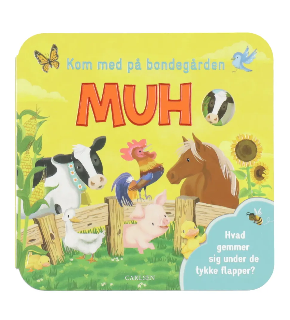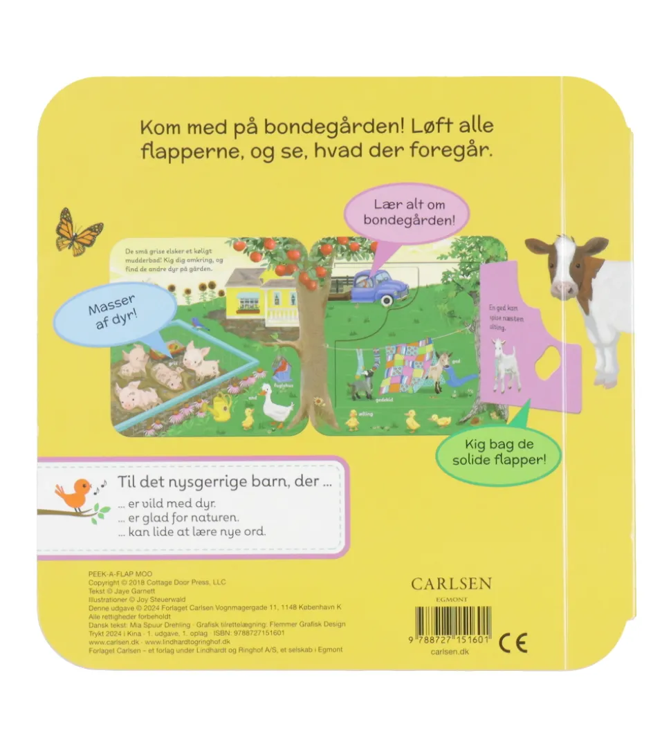 Fin Forlaget Carlsen billedbog med flapper, der har titlen “Kom med på bondegården – Muh”