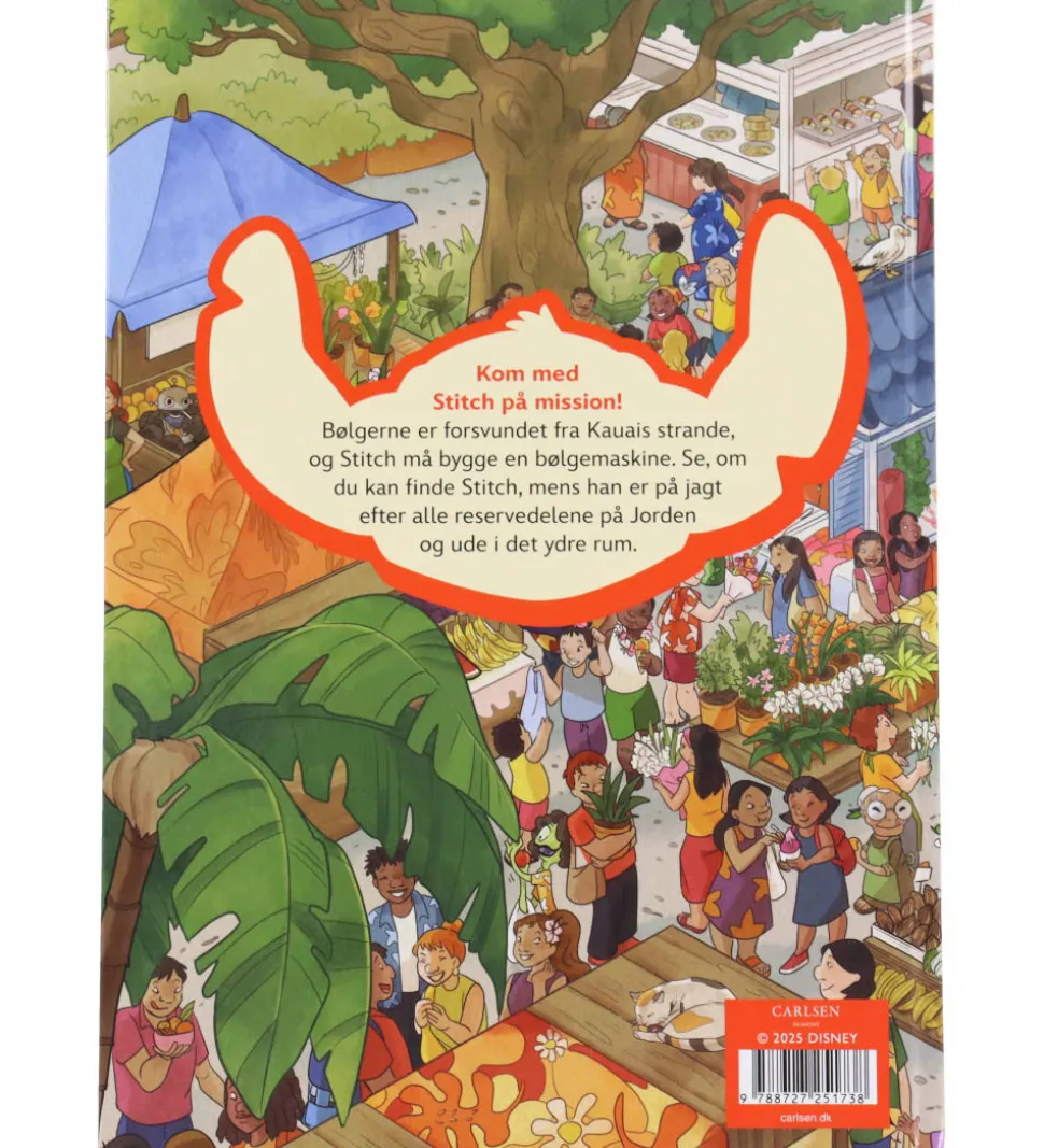 Bogen indeholder farverige sider med illustrationer fra Stitch-universet, hvor man kan komme med på mission og hjælpe Stitch med at finde forsvundne ting. Forlaget Carlsen har skabt en spændende søg-og-find-bog, perfekt til nysgerrige læsere.