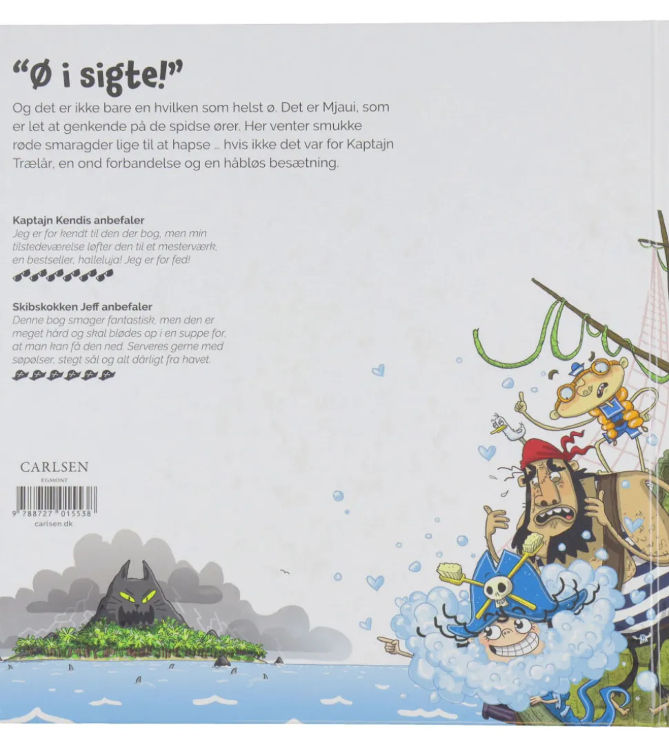 Bogen indeholder flotte illustrationer af en fantasifuld fortælling, om Kaptajn Skumskæg som skal besøge en ø for at hapse røde smaragder, men Kaptajn Trælår, en ond forbandelse og en håbløs besætning giver udfordringer.
