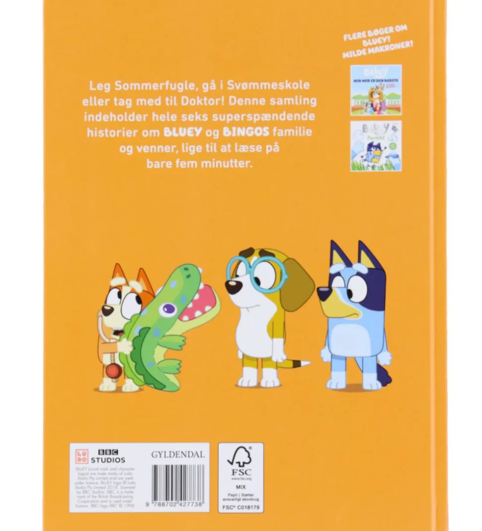 Fin Forlaget Gyldendal bog med titlen “Bluey – Bare 5 minutter mere – igen”.