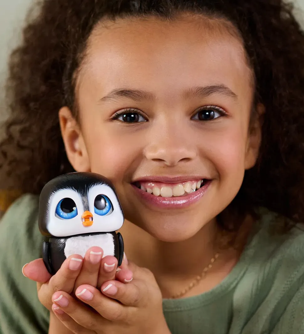 FurReal bamsen er interaktiv med over 50 lyde og reaktioner, der underholder børnene på en sjov måde. Pingvinen kan placeres i hånden og ved blandt andet at gnubben den på maven kommer den med bevægelser og lyde.