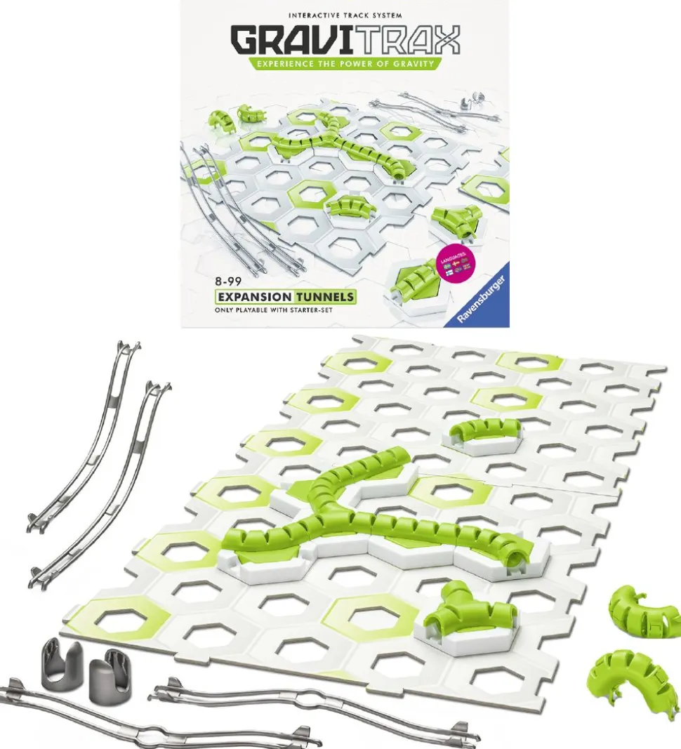 GraviTrax tunellerne kobles på GraviTrax startersættet, som en ekstra del af kuglebanen. Skab overraskelsesmomentet på din bane og forsøg, at holde blikket på kuglen, når den ruller gennem tunellerne.