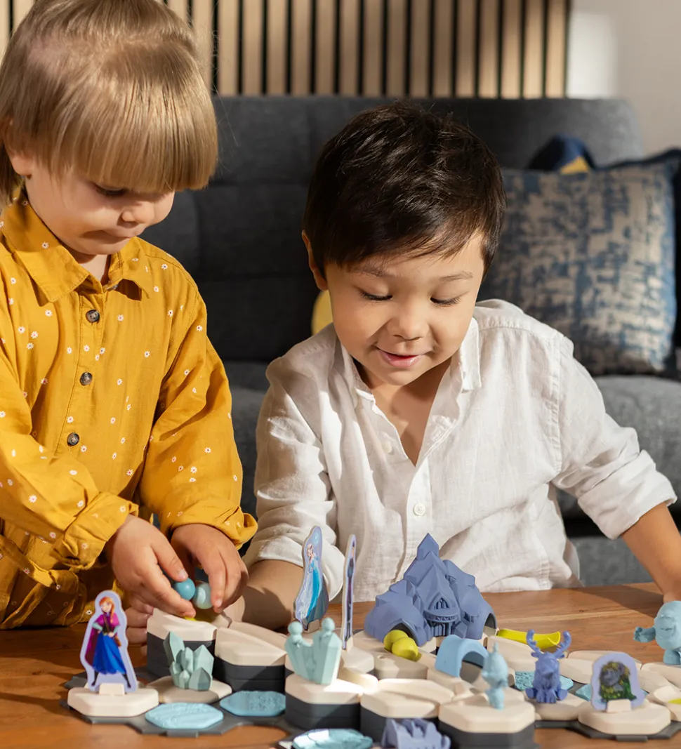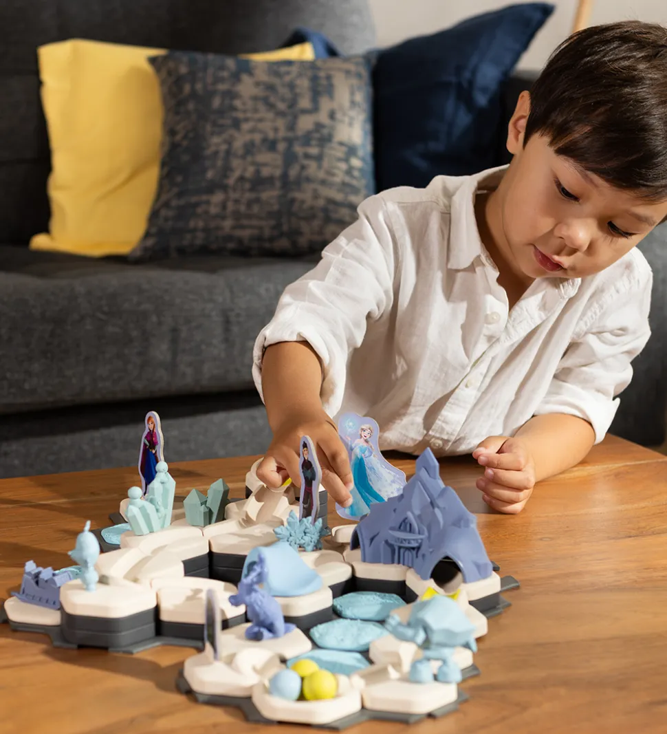 GraviTrax sættet er med til at dekorere sin egen kuglebaneverden og bringer fantasifulde historier til live med Elsa, Anna og Olaf i en frostklar, eventyrlig vinterverden.