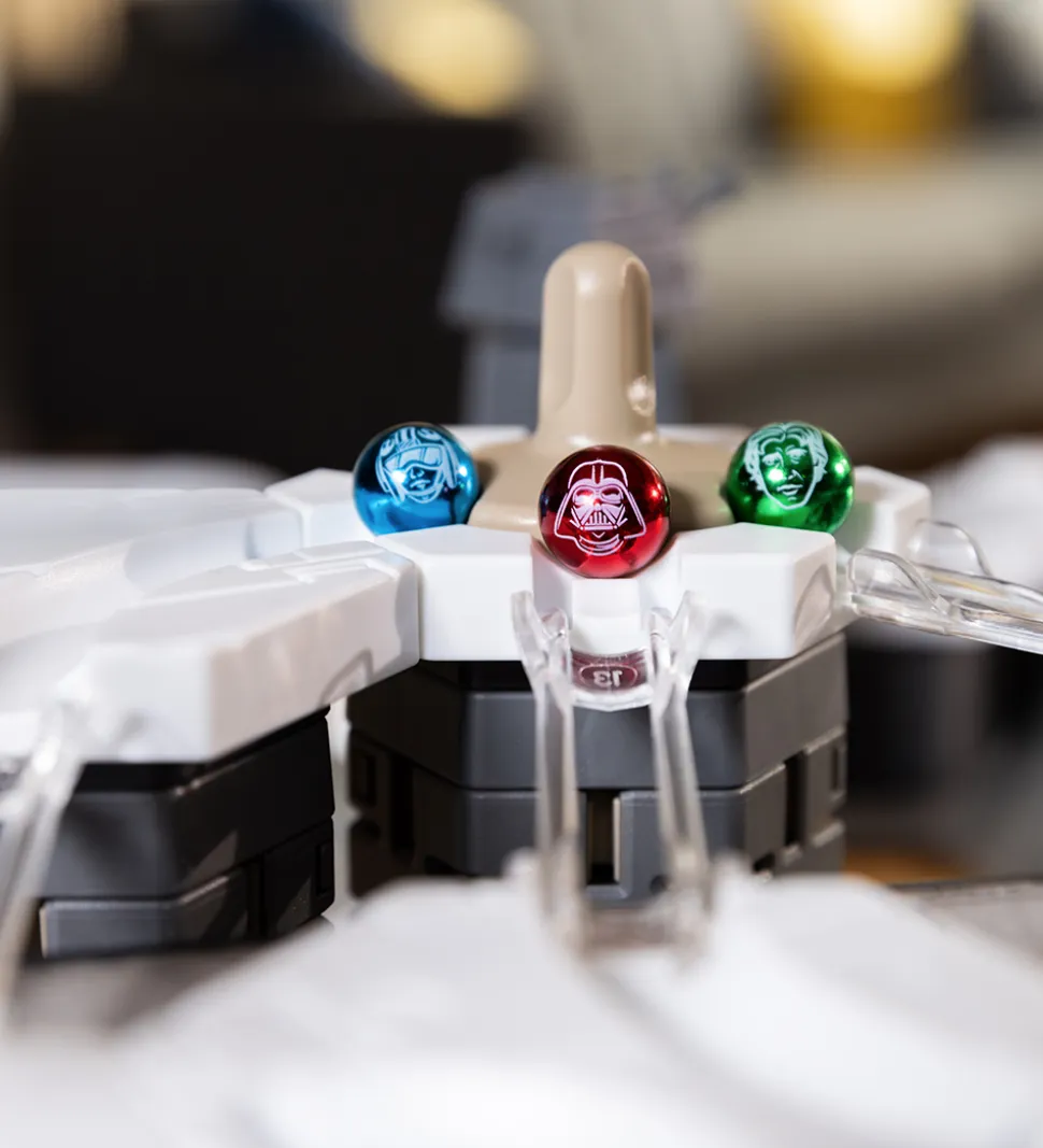 GraviTrax Death Star giver mulighed for kamp mellem den gode og den onde side. Med sættet kan man bygge sine egne kuglebaner i det flotte Star Wars-univers. Med forskellige elementer og komponenter kan man skabe spektakulære baner, hvor kuglerne ruller gennem spændende tårne, broer og specialeffekter inspireret af Imperiet og Oprørerne.