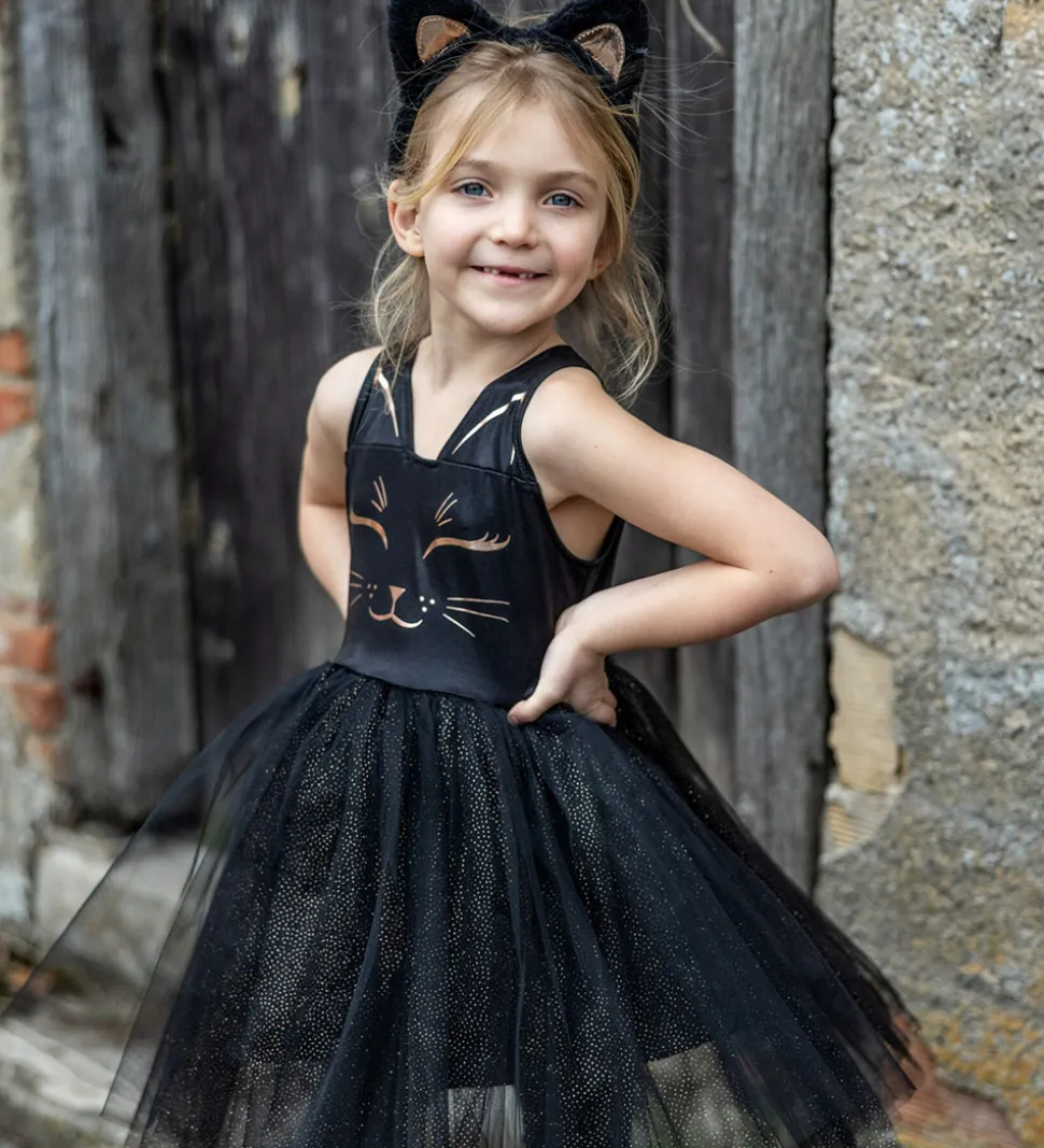 Flot Great Pretenders udklædning i form af en kjole og en hårbøjle med ører, så barnet kan klæde sig ud som en kat.