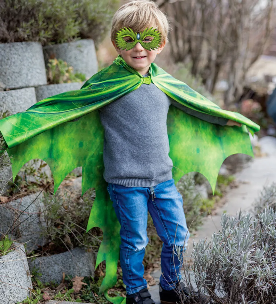 Flot Great Pretenders udklædning i form af en kappe og en maske, så barnet kan klæde sig ud som drage.