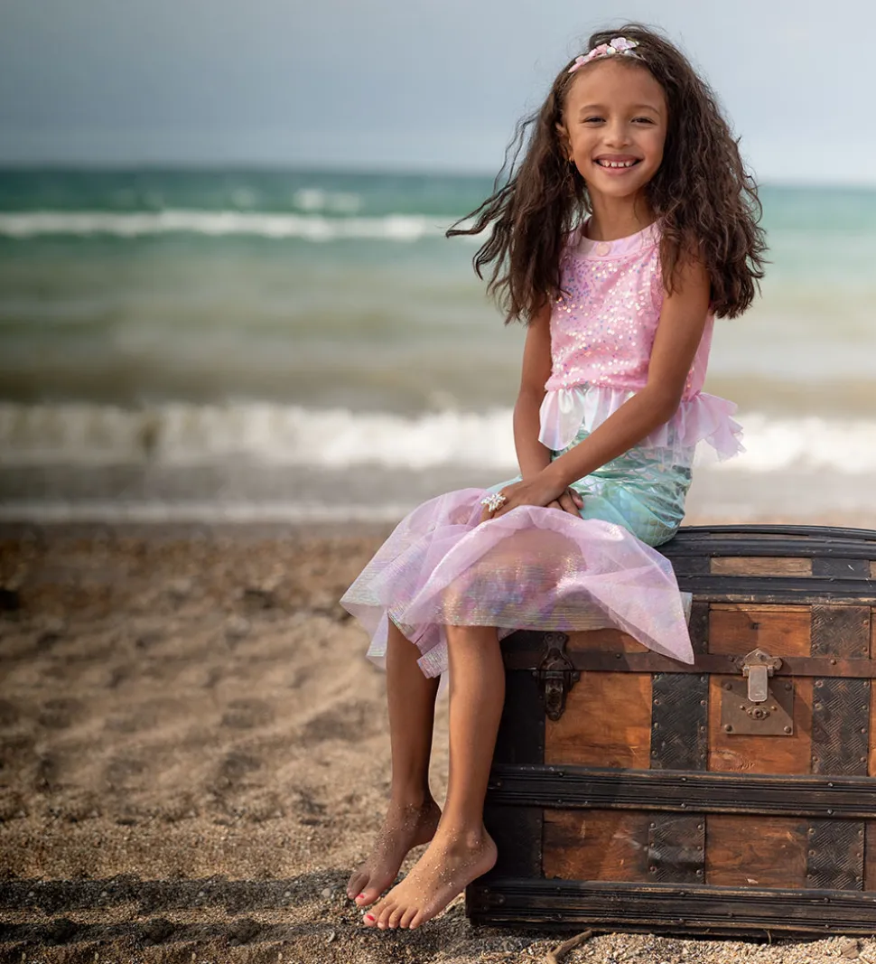Lækker Great Pretenders kjole i en lyserød nuance med glitrende palietter og en sød hafruehale. Denne udklædning har fine lag og en afslutning af tyl.