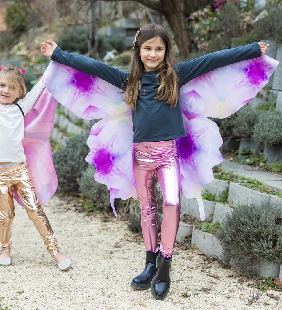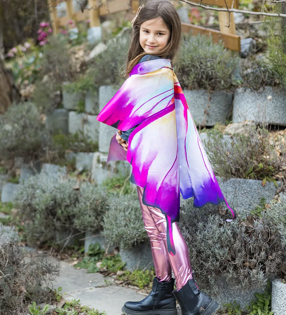 Farverig Great Pretenders udklædning som en sommerfugl med smukke nuancer af pink, lilla og orange. Dette kostume fanger blikket med sit unikke design og er perfekt til fantasifulde lege.