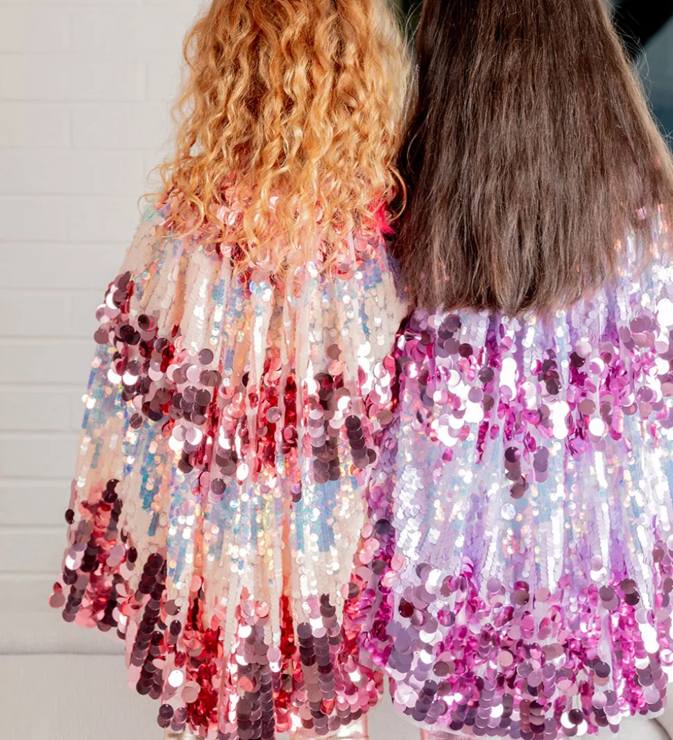 Smuk Great Pretenders udklædning i rosa med glitrende palietter, der giver et festligt udtryk. Kappen åbnes med velour i toppen, der gør den dejlig praktisk.