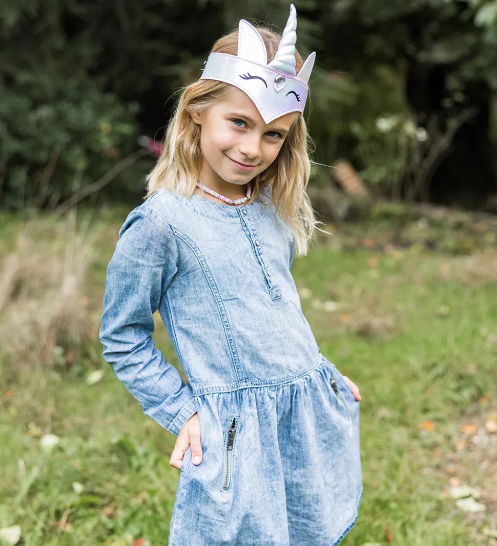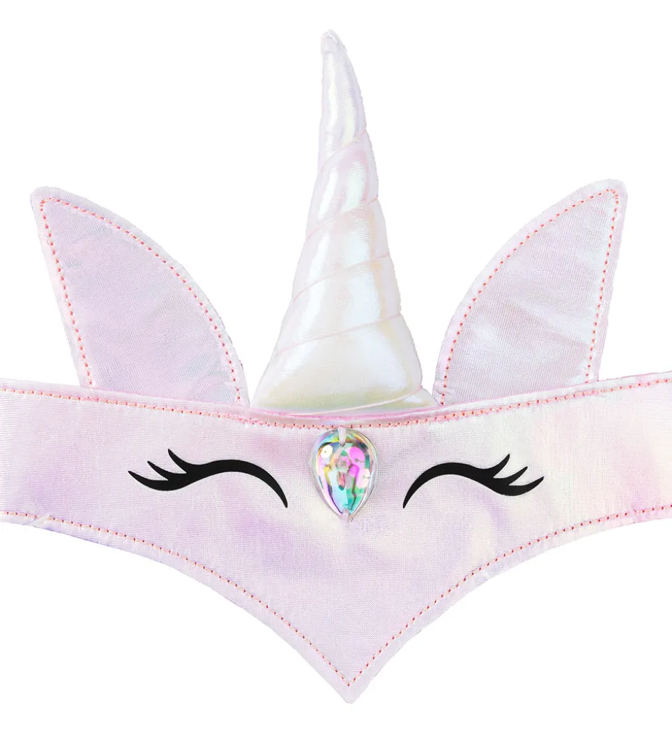 Flot Great Pretenders udklædning bestående af et enjhørninge hårbånd med søde ører, et horn, en sten og print af øjne på fronten.