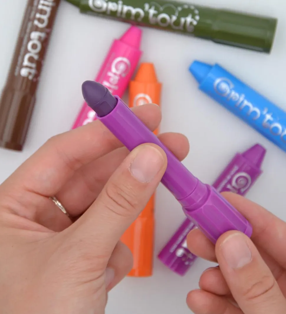 Grim Tout ansigtsmalingen er lavet som stifte, hvor farven kan skrues frem og tilbage. Det er nemt at påføre malingen og let at fjerne den igen med vand og sæbe.