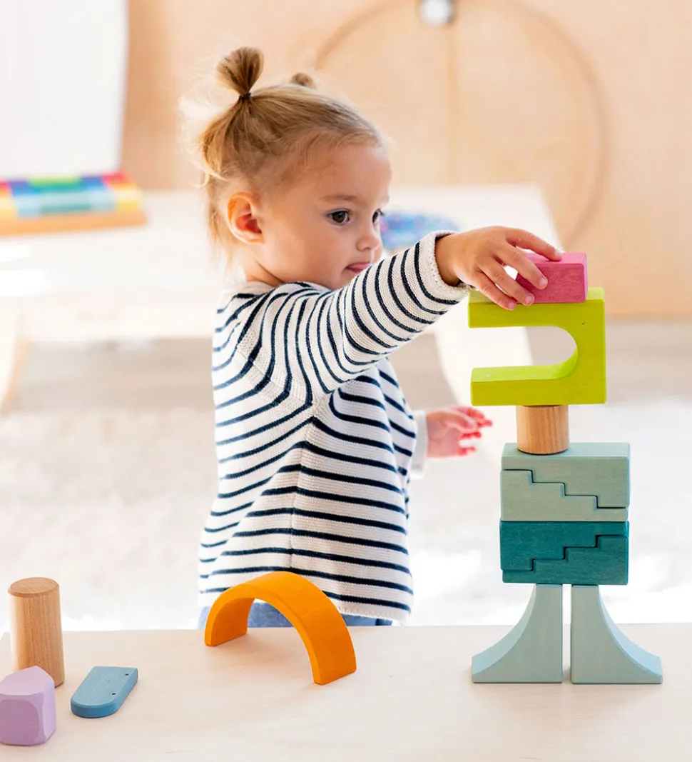 Grimms trælegetøjet er perfekt til de små, som stadig er ved at øve motorikken og den logiske sans. Trælegetøjet sælges samlet i bakken som et slot med døre, buer og tårne, men kan selvfølgelig bygges og stables til mange forskellige ting. Med de mange muligheder er der lagt op til mange timer med kreativ leg.