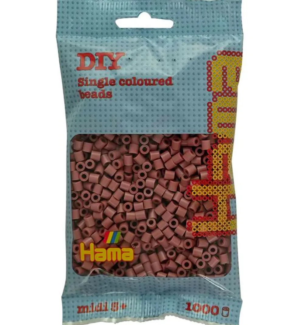 Sjove Hama perler i ensfarvet mørk blush.