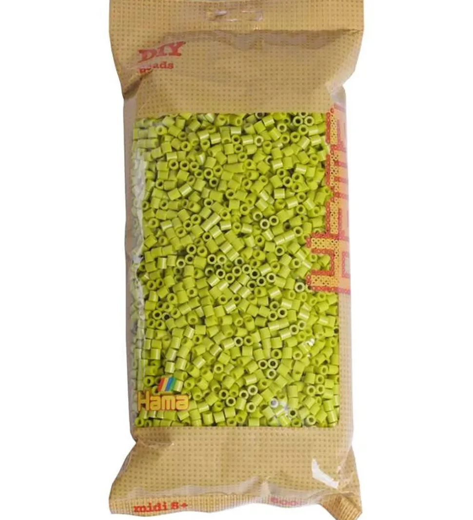 Friske Hama perler i farven lime.
