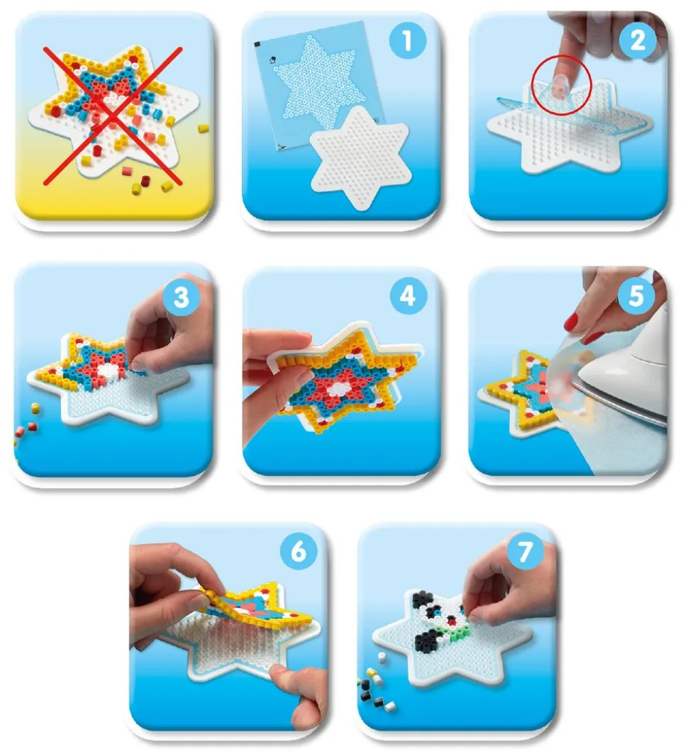 De praktiske stickers lægges ned over perlepladen og holder de påsatte perler fast inden de bliver strøget.