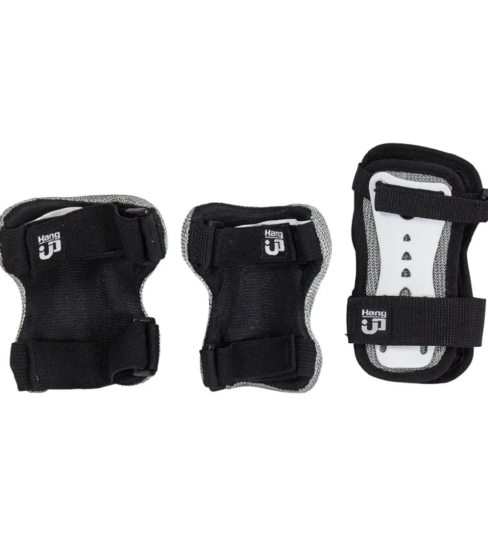 Praktisk HangUp beskyttelsessæt i hvid med detaljer i blå, grå og sort.
