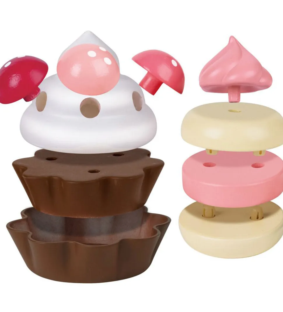 Hape sættet indeholder en lækker menu med roulade, flødekager, cupcakes og tilbehør til desserterne. Sættet er perfekt til børn, der elsker rolleleg, og gør madlavningslegen komplet.
