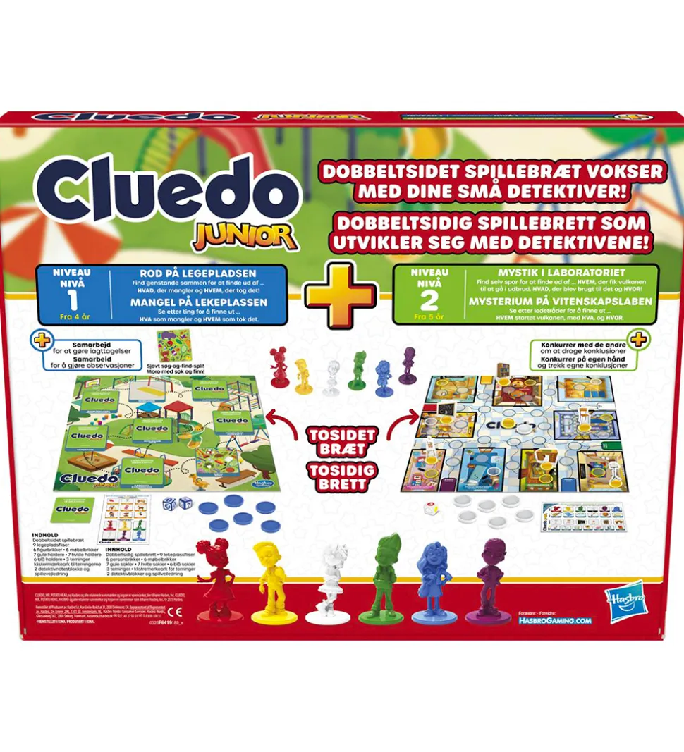 Cluedo Junior er i et børnevenligt og hyggeligt design og er stadig spillet, hvor du kan løse et spændende mysterium.