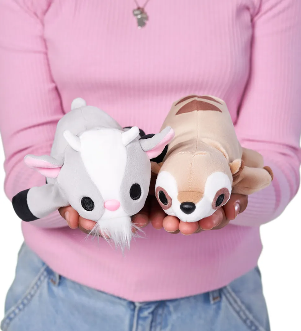 Sød Hug A Lumps bamse formet som en hyrdeged i lysegrå med sorte og hvide detaljer.
