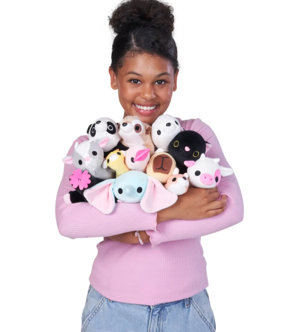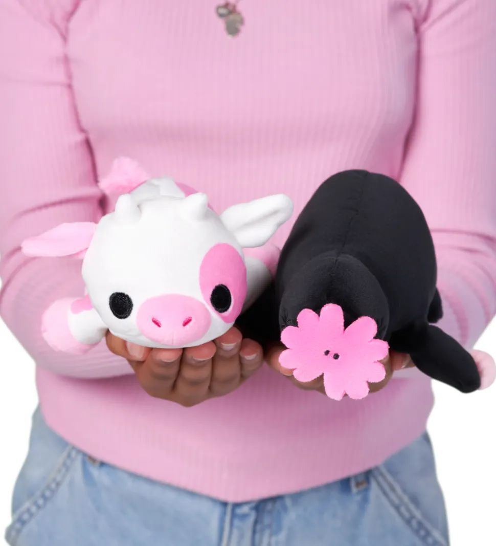 Sød Hug A Lumps bamse formet som en muldvarp i sort med rosa detaljer.