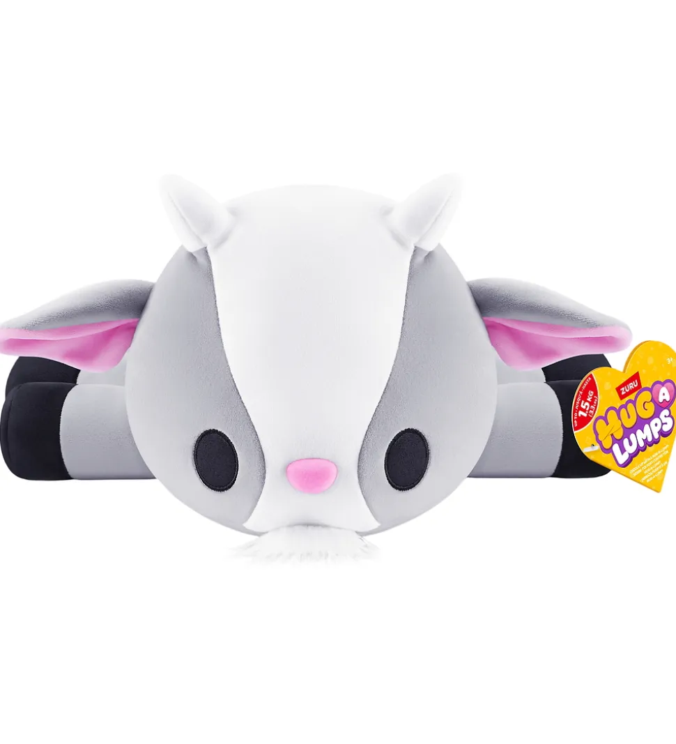 Sød Hug A Lumps bamse formet som en hyrdeged i lysegrå med hvide og sorte detaljer.