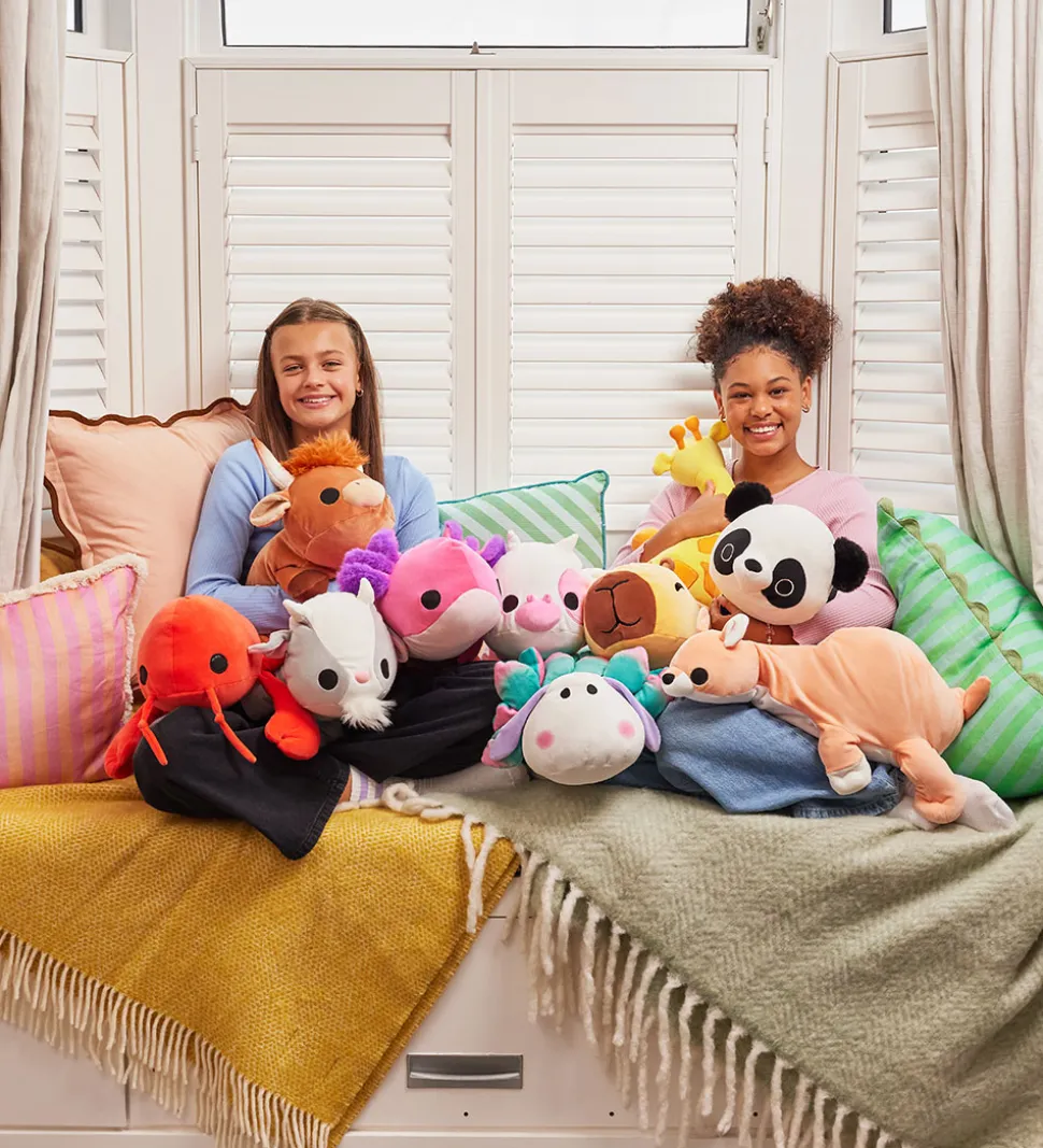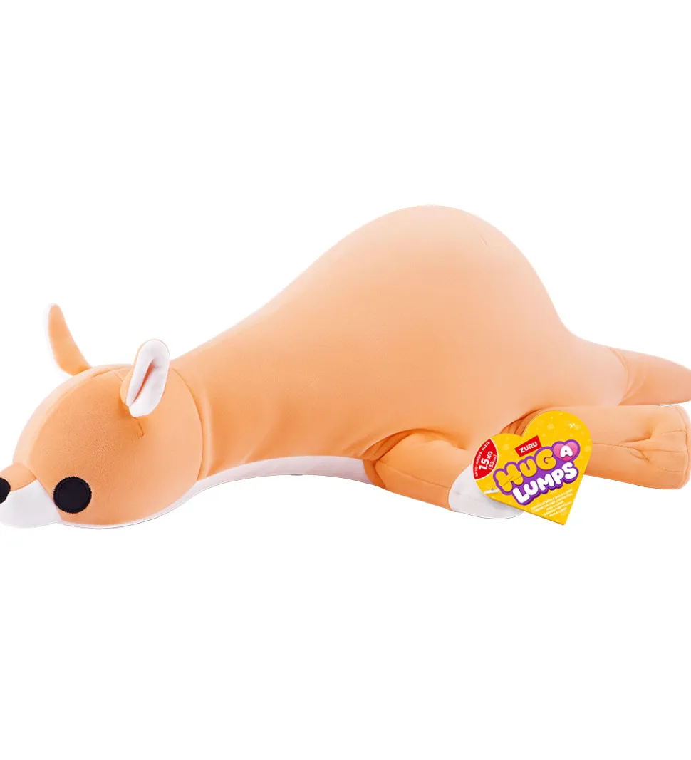 Sød Hug A Lumps bamse formet som en kænguru i orange med hvide detaljer.