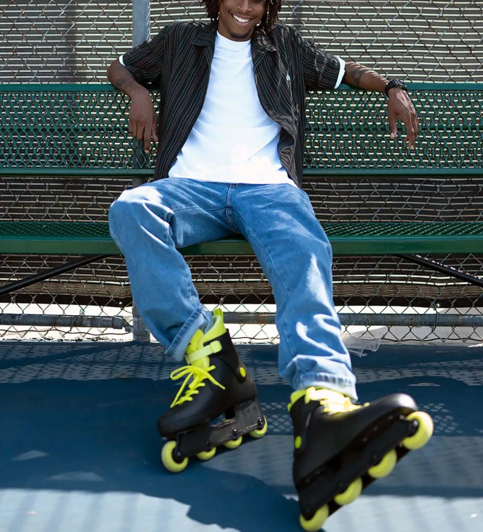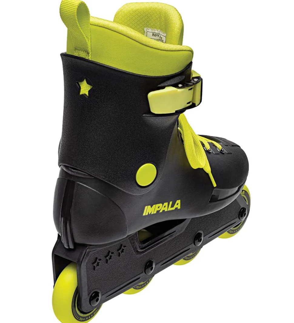 Seje Impala rulleskøjter i sort med gule snøre, hjul samt åbning.