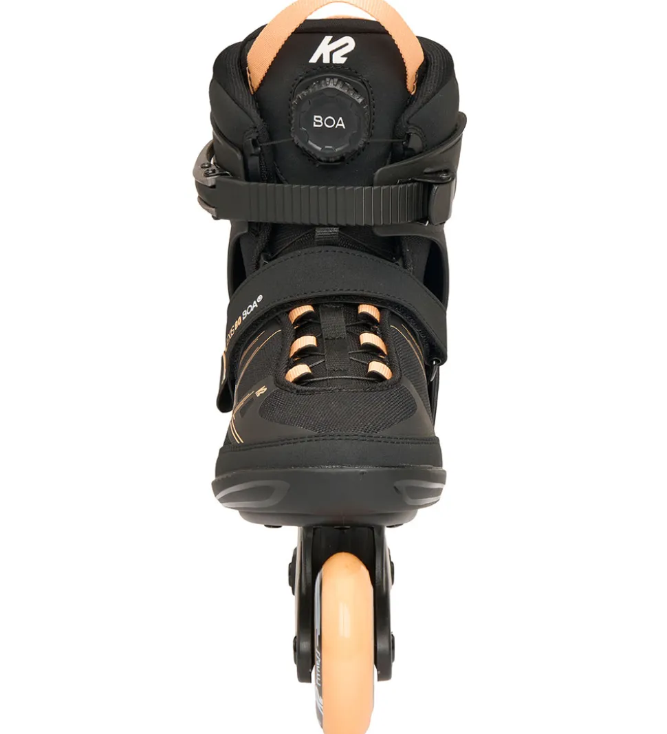 Flotte K2 rulleskøjter i sort med orange detaljer.