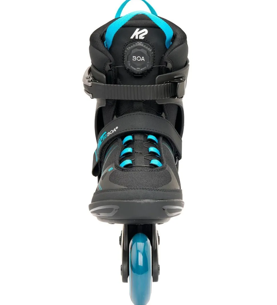 Gode K2 rulleskøjter i sort med blå detaljer.