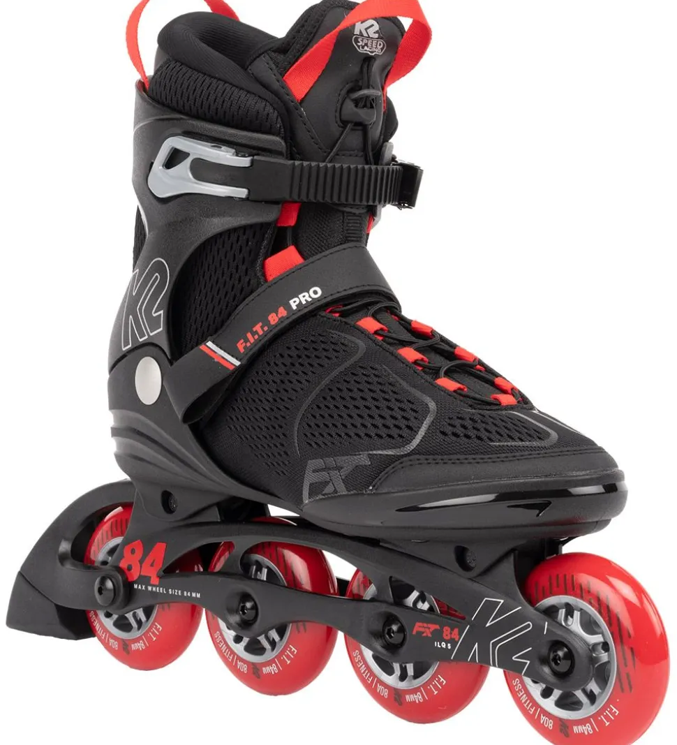 Fede K2 rulleskøjter i sort mesh med røde detaljer.