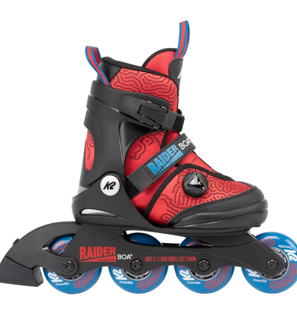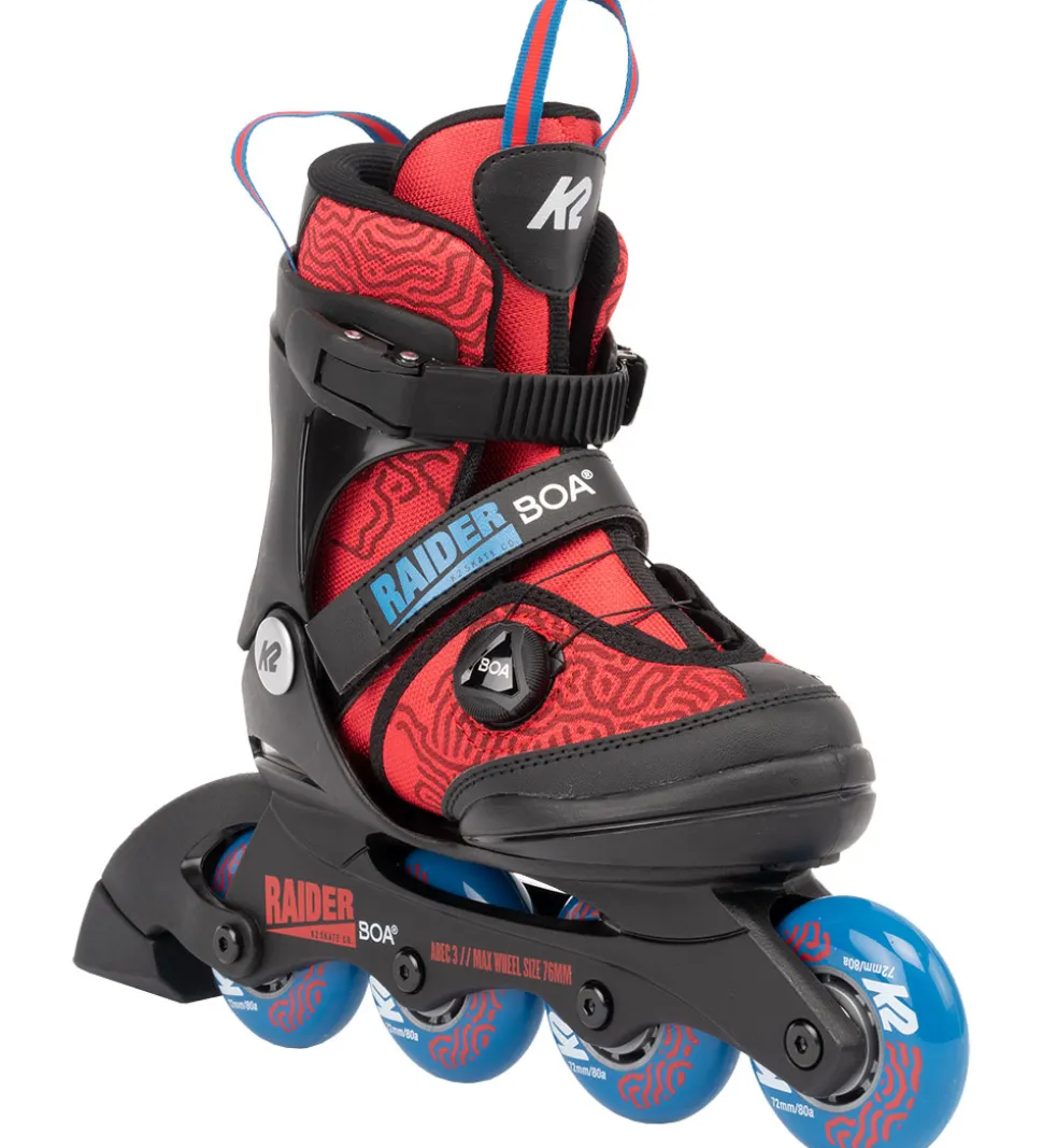 Flotte K2 rulleskøjter i sort og rød med blå detaljer.