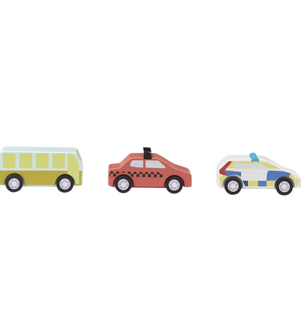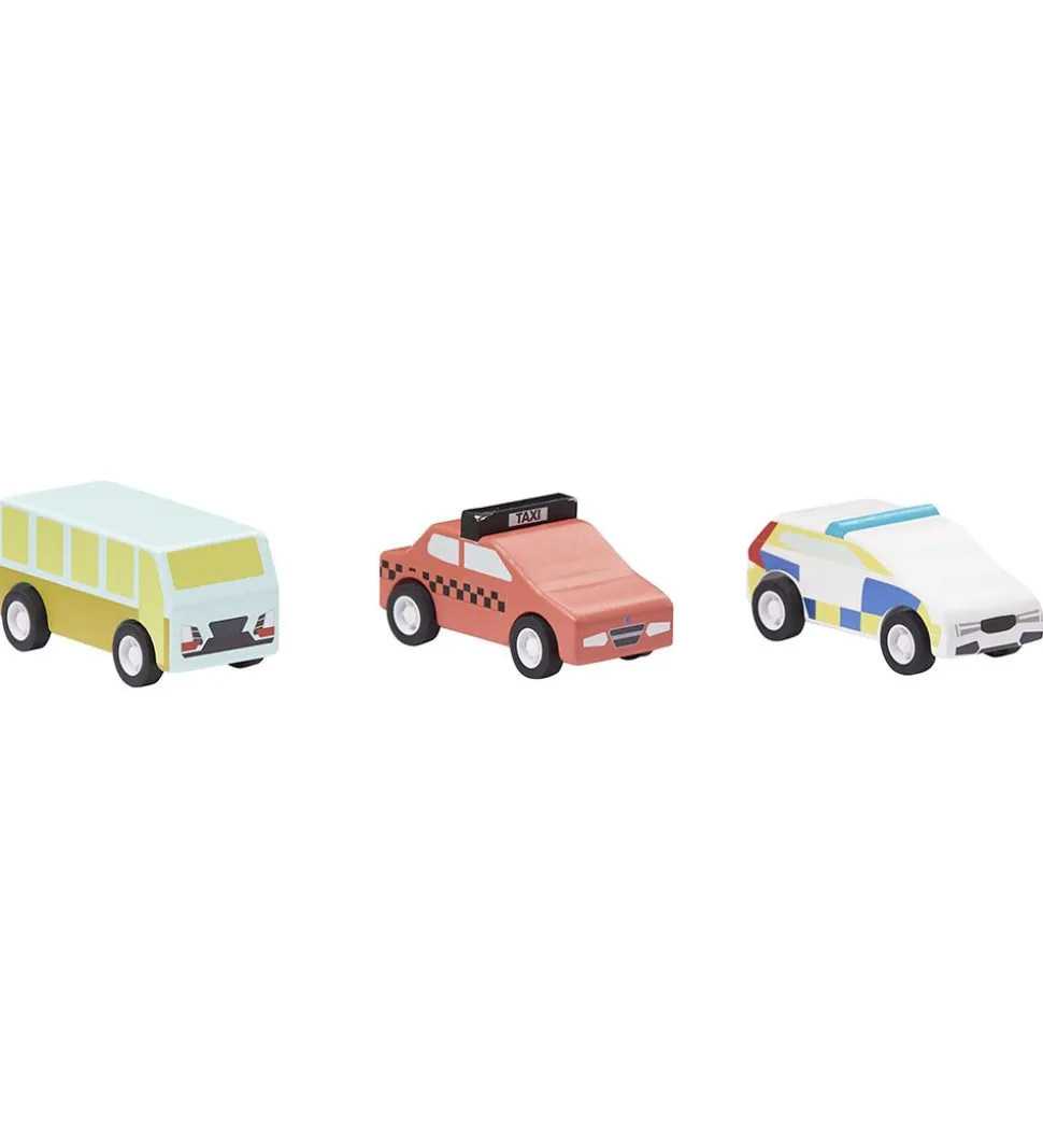 Sjove Kids Concept biler bestående af tre separate biler, nemlig en bus, en taxa og en politibil.