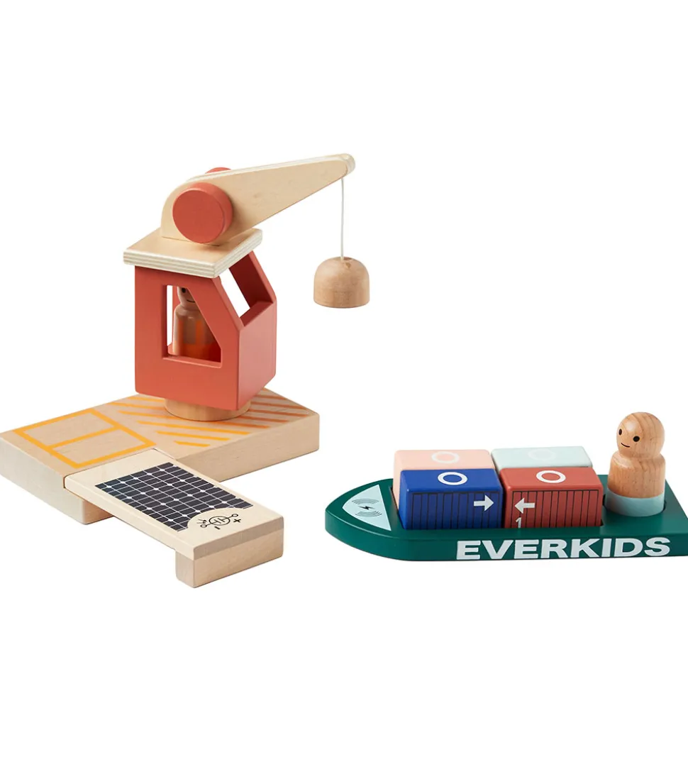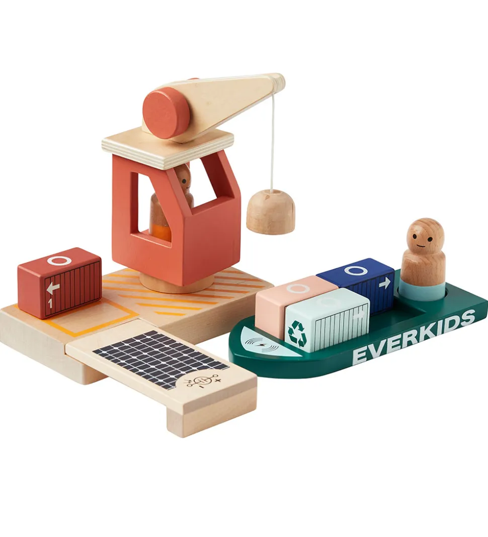 Sjovt Kids Concept trælegetøj i form af en lasthavn i malet træ og med magnetiske funktioner. Sættet består af: