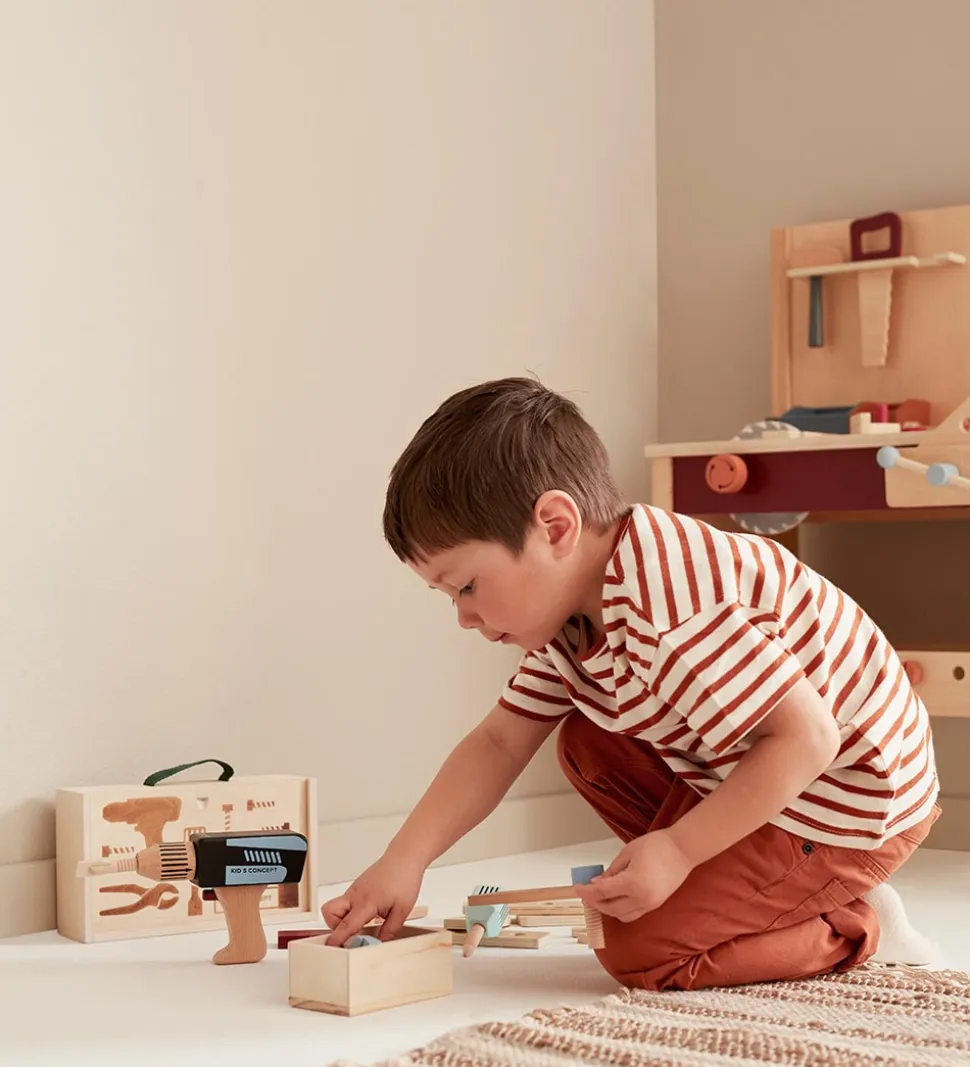 Værktøjs sættet er perfekt til de små, som elsker at skabe deres egen leg. Sættet er med til at styrke kreativiteten og finmotorikken.