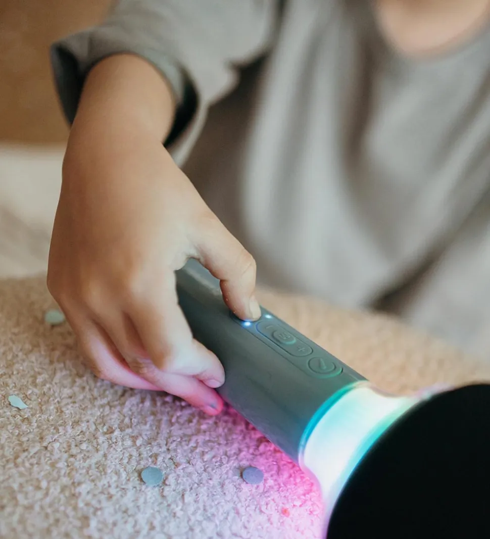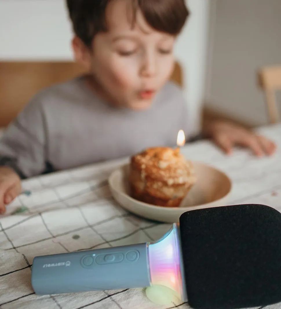 Kidywolf mikrofonen er en alt-i-en der gør karaokeaftenerne helf uforglemmelige. Mikrofonen har en række sjove funktioner; stemmeforandring med 6 forskellige stemmer, kvinde, mand, baby, magi, original og ekko. Mikrofonen tillader de små stjerner af udforske deres kreativitet ved at synge og lege med lydeffekter og det flerfarvede LED-lys. Den er trådløs, praktisk og nem at bruge hvilket gør den ideel til at tage med overalt.