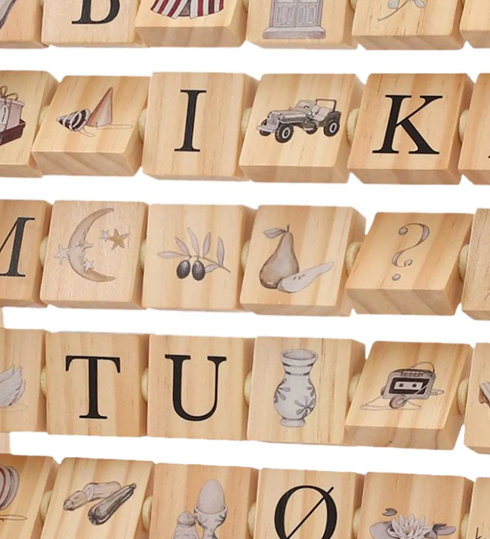 Fin Konges Sløjd ABS blokramme i træ med bogstaver og motiver i brandets karakteristiske design.