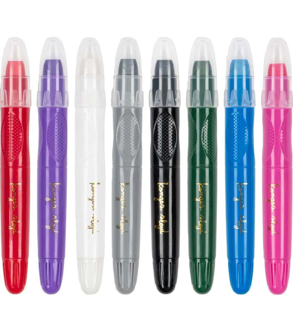 Farverig Konges Sløjd ansigtmaling med 8 ansigtmalingkridt i forskellige nuancer. Sættet er perfekt til kreative stunder og giver mulighed for sjove design til festlige lejligheder og leg.