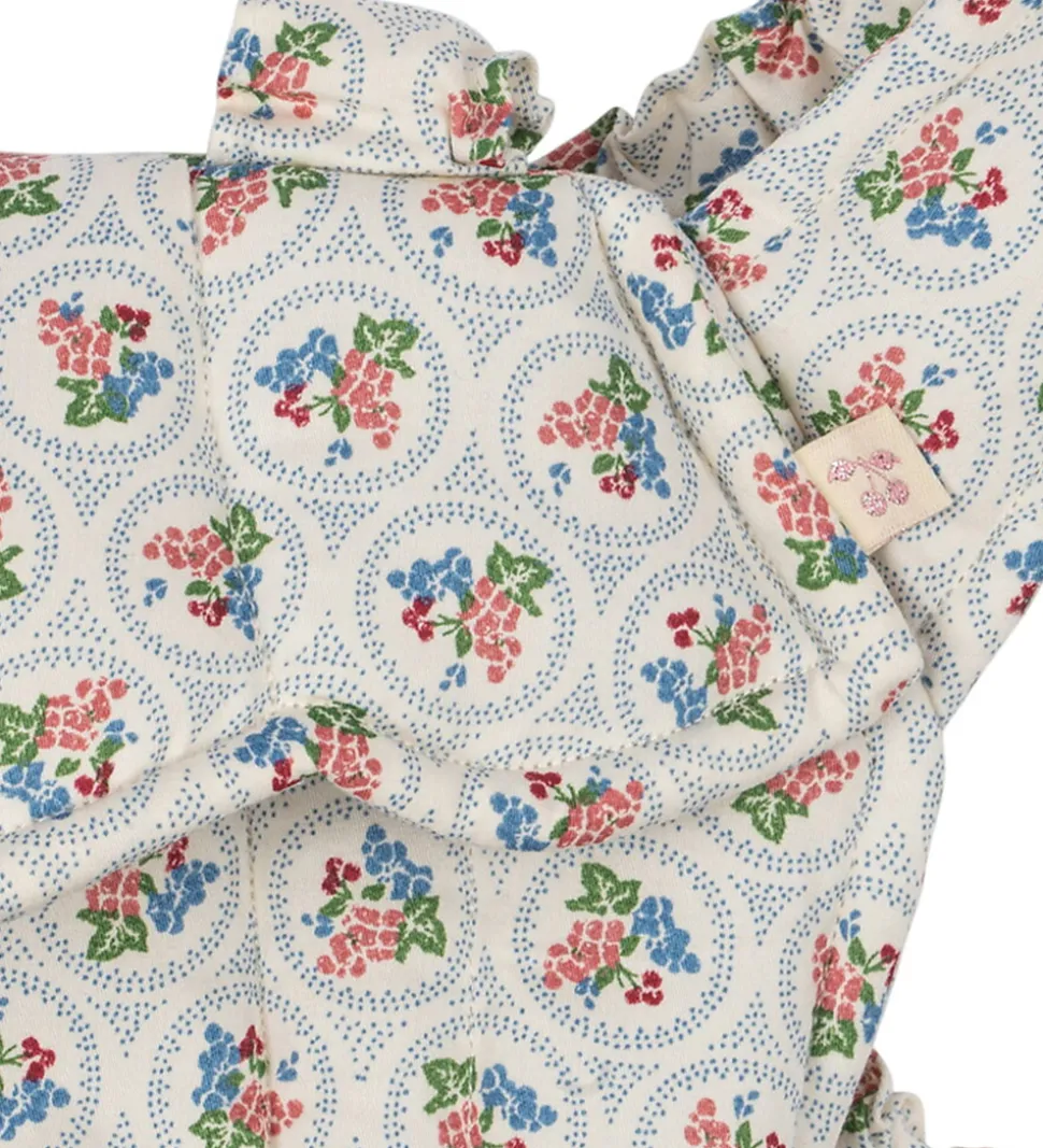 Fin Konges Sløjd dukkebæresele i hvid med et blåt, fint mønster og blomster i grøn, rosa, rød og blå. Bæreselen har praktiske stropper, der gør det let at håndtere. Dukkebæreselen tilføjer charme til legestunden, og inspirerer til kreativ leg.