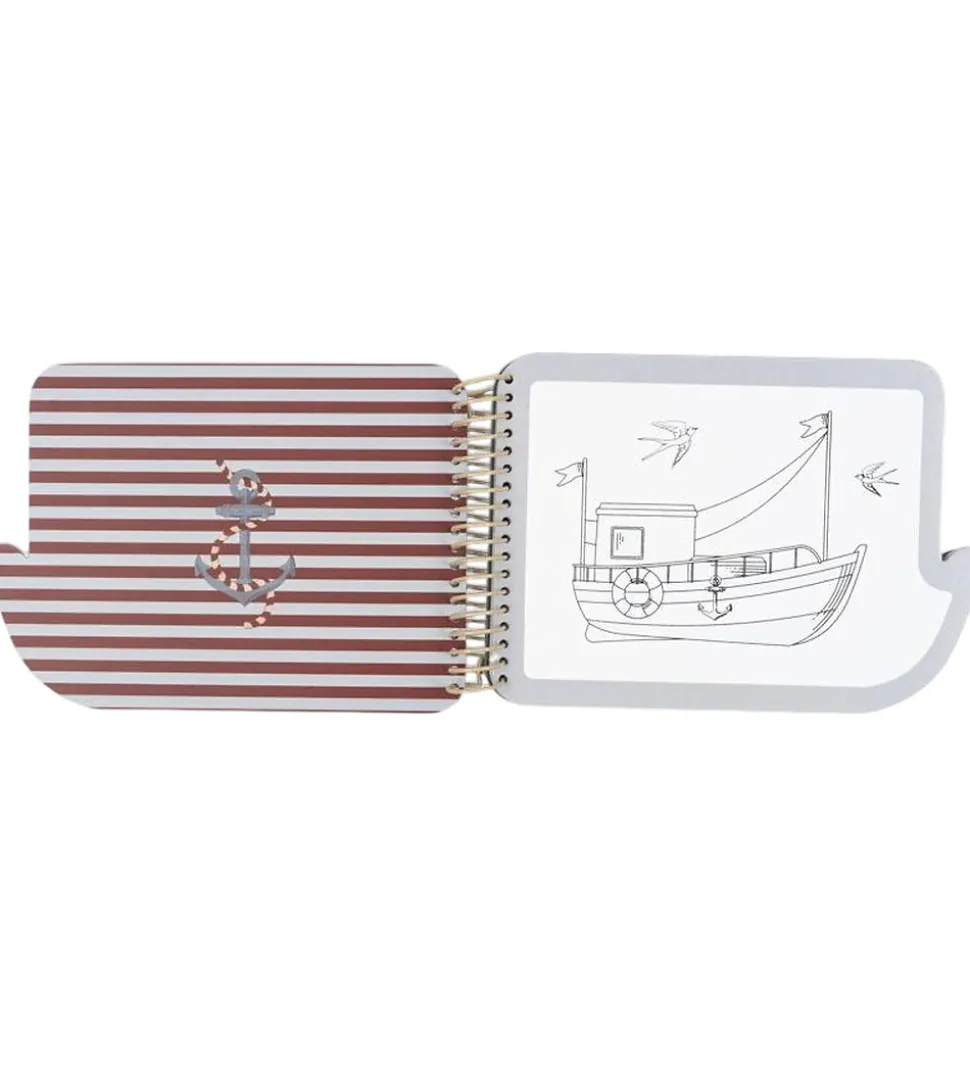 Charmerende Konges Sløjd malebog med bådmotiver. Malebogen kommer med en vandpensel, som giver mulighed for at farvelægge med vand, og indeholder syv forskellige sider med farvelægningsmotiver. Ideelle til kreative stunder for børn.