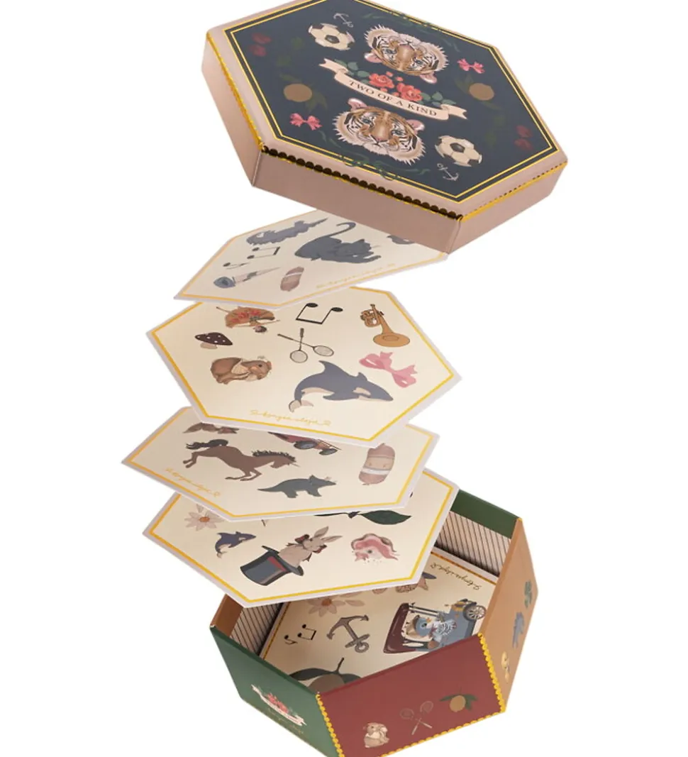 Spillet indeholder sjove kort med forskellige dyr og objekter, der inviterer til timevis af underholdning. Det går ud på at se på kortet og finde det samme billede på spillepladen som den første.