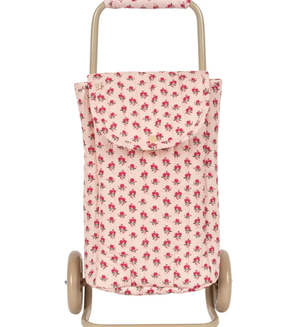 Flot Konges Sløjd trolley i en lyserosa nuance med et charmerende blomsterprint i rød. Konges Sløjd trolleyen har to hjul, et praktisk håndtag og et stort rum der åbnes med en trykknap.