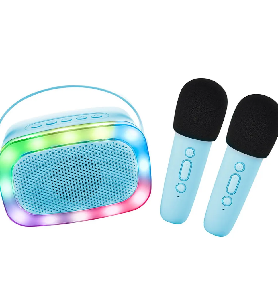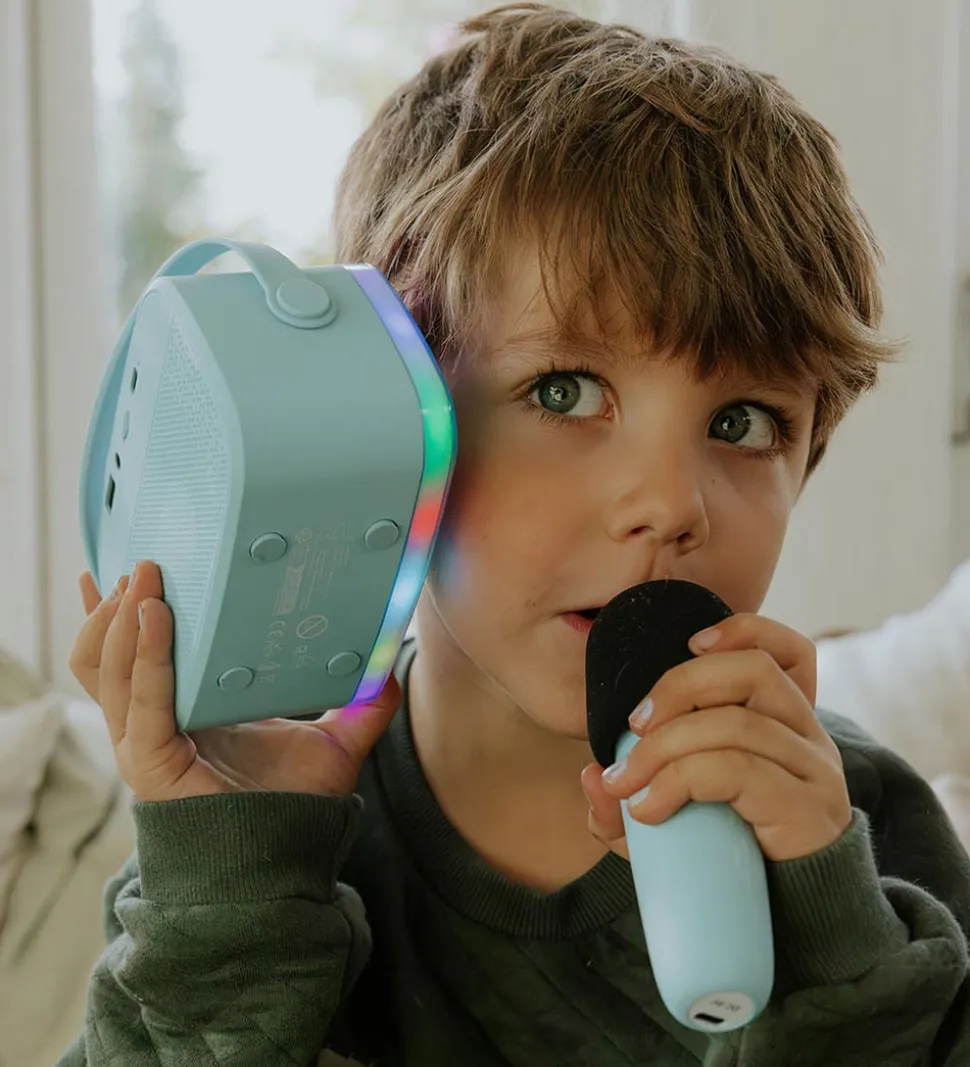 Lalarma højtaleren kobles til din telefon eller lignende med bluetooth, så det er let at spille musik, samt har højtaleren 5 forskellige lyseffekter. Mikrofonen har praktiske knapper så man kan styre musikken mens man synger. Sættet er perfekt til de musikalske og kreative, som vil synge med på deres yndlingssange.